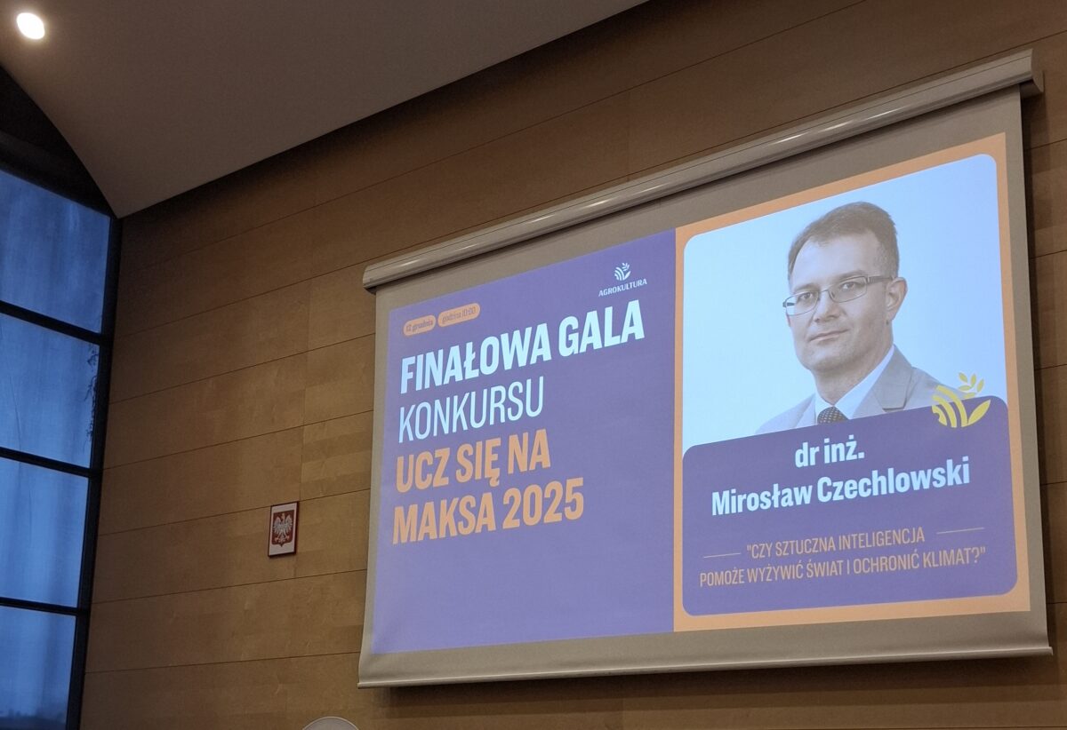 „Czy sztuczna inteligencja pomoże wyżywić świat i ochronić klimat?” – to zasadnicze i bardzo ważne, także dla branży rolniczej, pytanie było tematem wystąpienia dr. inż. Mirosława Czechlowskiego, pracownika badawczo-dydaktycznego Uniwersytetu Przyrodniczego w Poznaniu, adiunkta w Instytucie Inżynierii Biosystemów, który uczony wygłosił, 12 grudnia 2025 roku, podczas konferencji podsumowującej 4. edycję konkursu pt.: „Ucz się na maksa”, w siedzibie Biocentrum Uniwersytetu Przyrodniczego w Poznaniu. Ze względu na to, że audytorium tego niezwykle interesującego wykładu, stanowili uczniowie szkół rolniczych, czyli przyszli rolnicy i specjaliści rolniczej branży, warto poświęcić temu tematowi znacznie więcej uwagi.